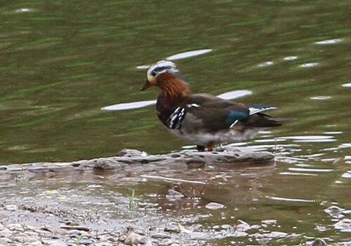 市内公園沿いに川が有り、流れのない窪みにオシドリや鴨、アオサギが居ました。 繁殖期には派手で美しかったオシドリ(♂)が美しい羽根が消え別鳥の様です 戦国時代の落武者のような姿に・・・ (大きくトリミングしました)