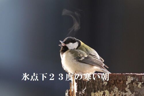 シジュウカラ シジュウカラの吐く息が白く見えた朝・・・最低気温-23度 ヒヨドリ ヒヨドリ夫婦の後ろ姿も寒そう