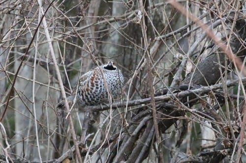 日中の気温がプラスになり人も野鳥も春を感じます 樹上のライチョウが体を膨らませアピールする、、雌は何処だ?